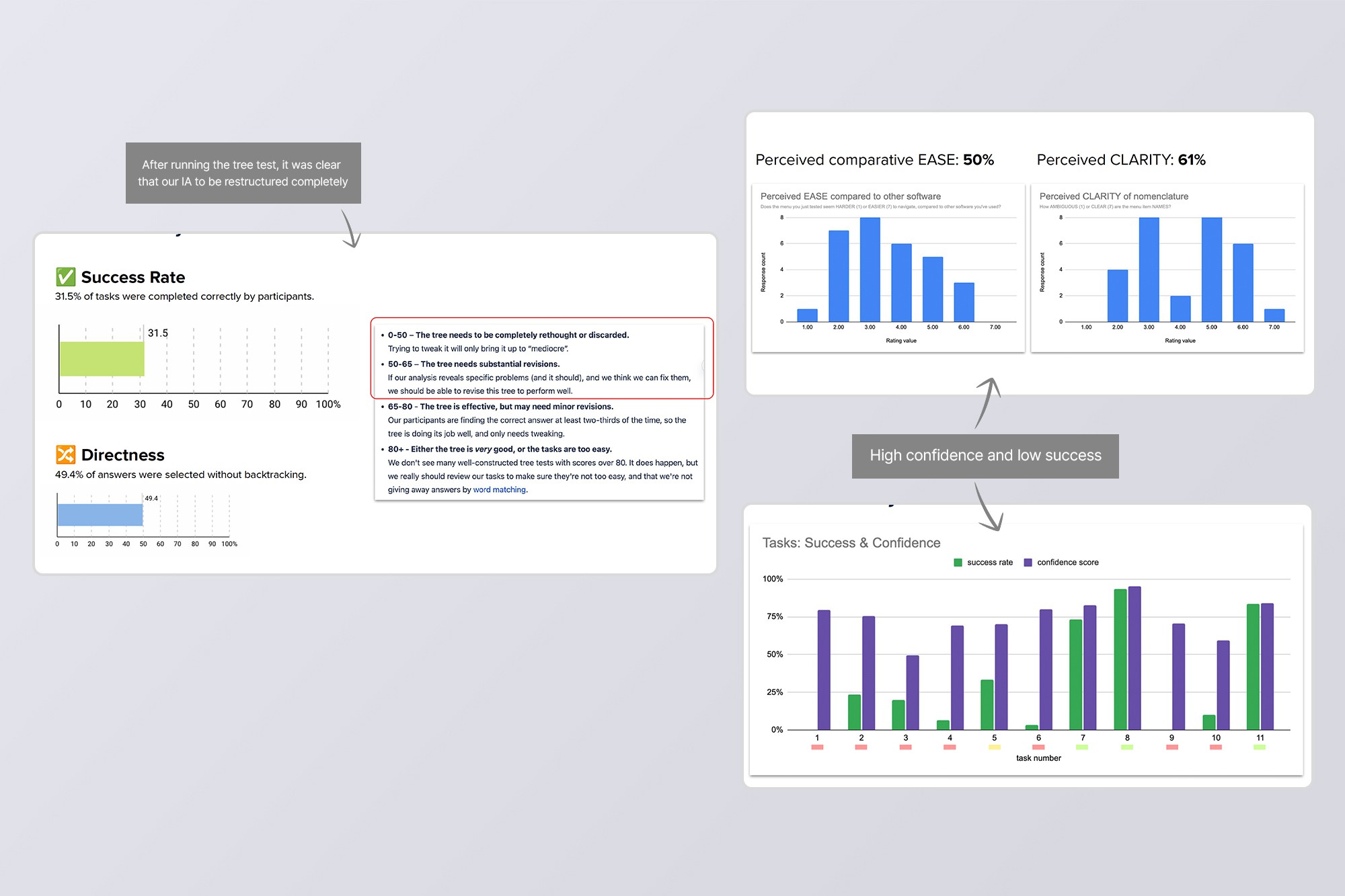 The redesign went live after I moved on, so I didn't get to track the final impact. That said, our tree tests showed significant improvements over the old structure, and internal feedback validated that we were solving the right problems.