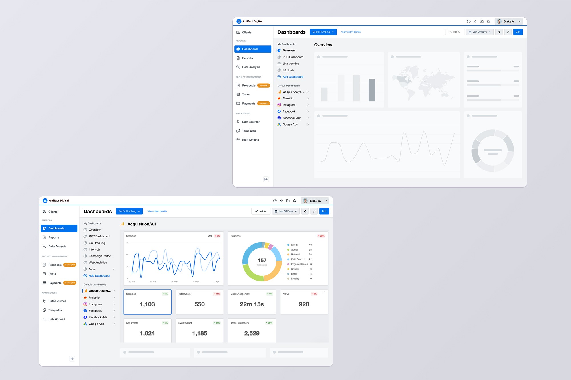 The platform handles customization at two levels: individual projects and campaigns, plus agency-wide branding. This required a two-tier navigation system that became harder to scale. Every time we added a feature, it became less obvious where things belonged. Users got lost doing basic tasks, relied on workarounds, or had to backtrack constantly. We needed to give people a navigation system they could actually trust.