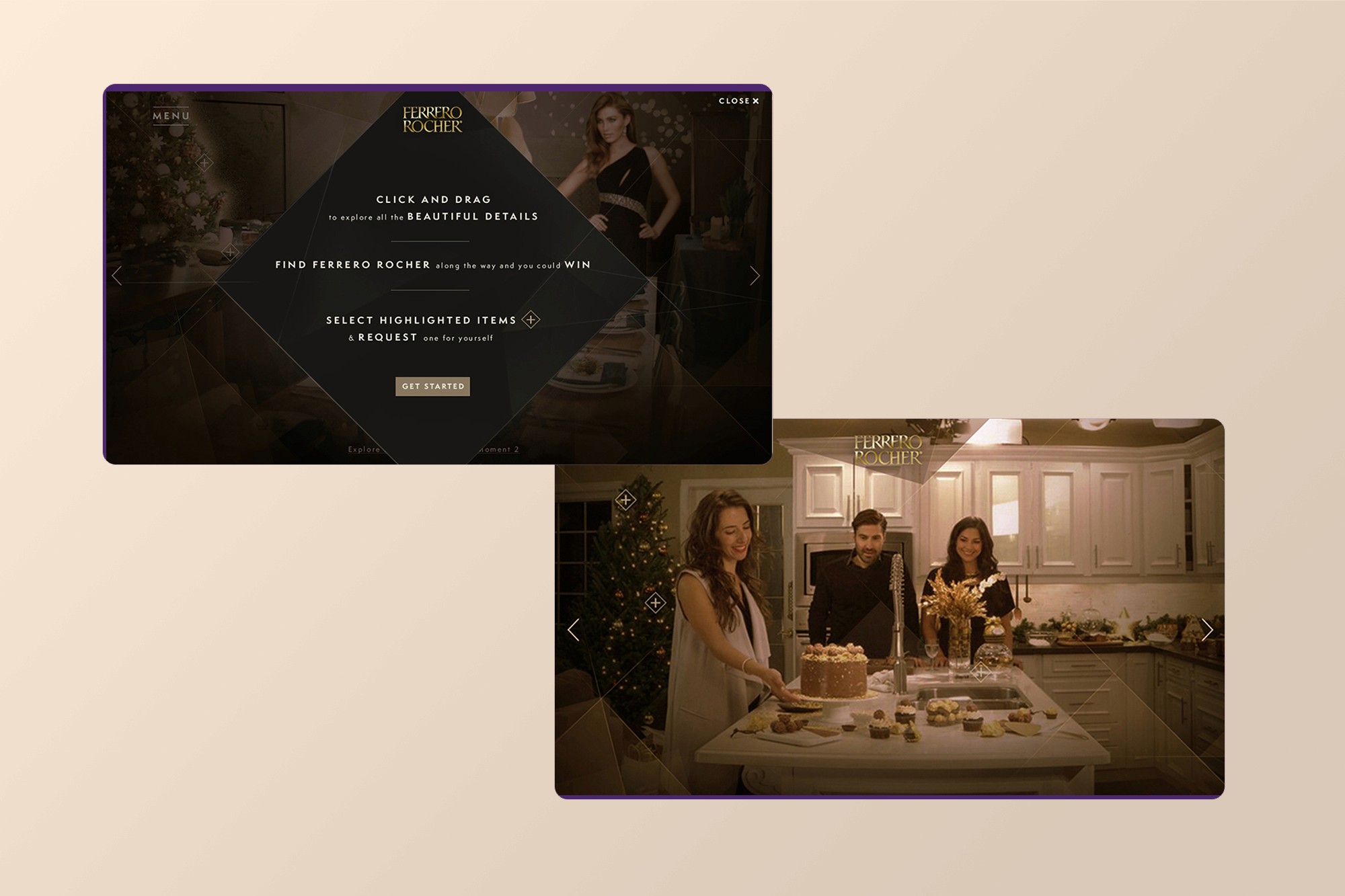 For Ferrero Rocher's winter campaign, we wanted to position their chocolates as the heart of holiday celebrations. We created an interactive party experience where users explored rooms designed by top Canadian home decor influencers. Each space featured curated serving pieces and decor that brought the festive atmosphere to life.